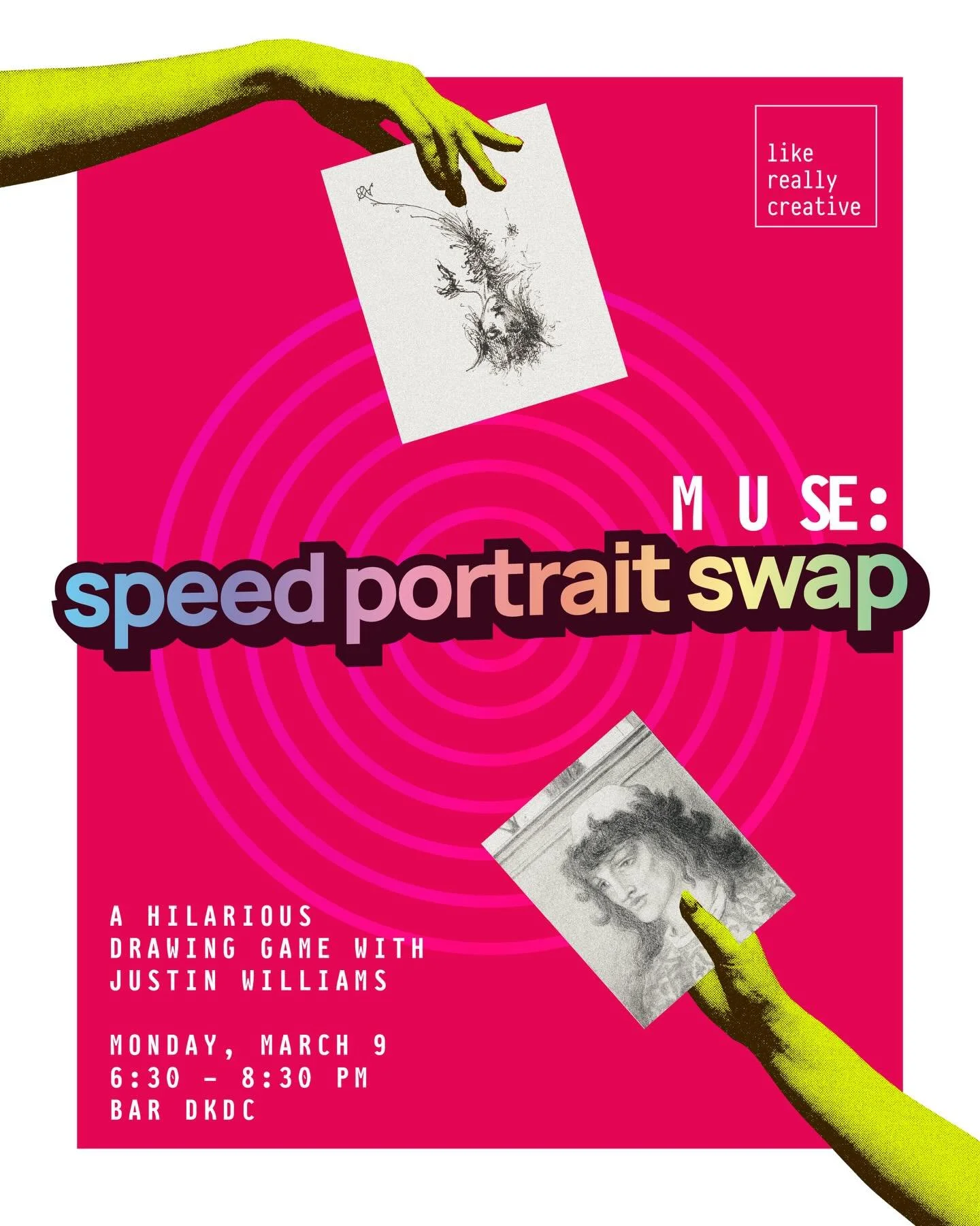 Come play Speed Portrait Swap, a laughter-inducing art game led by Justin Williams, where everybody takes turns drawing each other in a limited amount of time. At the end of the game, everybody has several unique portraits of themselves.