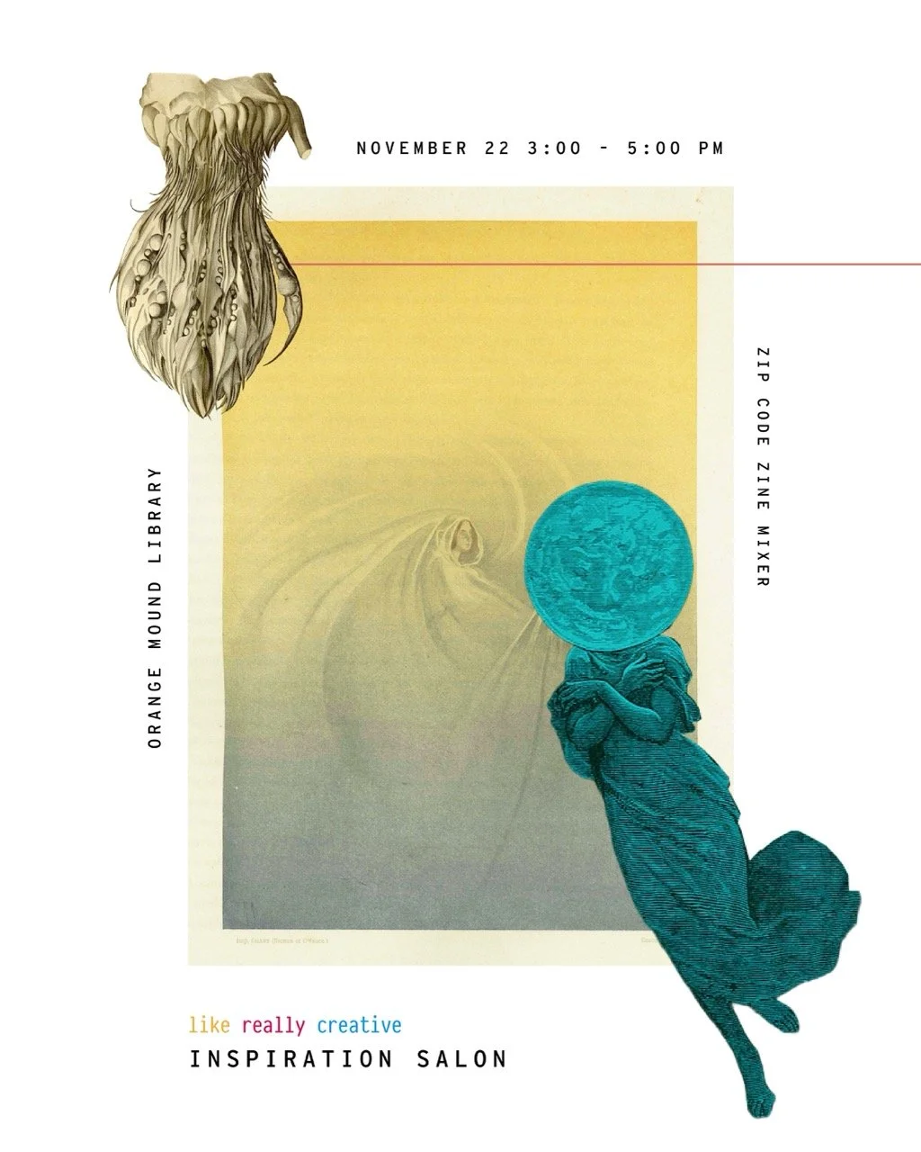 Meet with and make with your neighbors at the Like Really Creative Inspiration Salon: Zip Code Zine Mixer. Join artist and musician Joi Purvy in a zine making workshop that ties in personal narratives that capture your neighborhood's spirit. Experience the mesmerizing process of mixed-media art creation as artist Alana Reece-Walker works on a piece layer by layer as you ask questions about the process. Lose yourself in curated art books, experimental films, and fashion showcases.